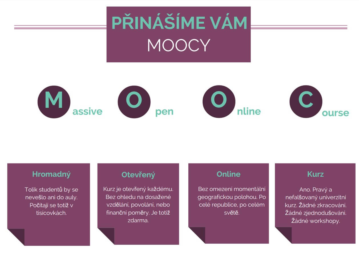 Ačkoliv mnoho lidí nezná přímo zkratku „MOOC“, o možnostech studia se dnes již obecně poměrně ví. Internet má sice stále ještě (možná navíc se zvyšující se intenzitou vzhledem k fenoménu fake news) pověst média, na kterém je třeba se mít neustále na pozoru ohledně informací, které obsahuje. Internet byl ale od počátku zamýšlen jako médium, které mělo přinést revoluci v tom, jak se dá pracovat s informacemi. Nejsou informace jako informace. Informování o konkrétních událostech po světě má poněkud jiný charakter než komplexní celky zevrubně pojednávající o nějaké oblasti vědy. Po roce 2000 se snahy o to přinášet kurzy v online prostředí a nabízet je velkému množství účastníků rozjely naplno. První krůčky měly formu obvykle jednoduššího e-learningu zpravidla ve formě textu, přičemž celá tato konstrukce měla být pouhou podporu klasické „offline“ výuky.